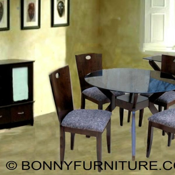 Materials: Tempered Glass, Solid Rubber Wood, Cushion seats